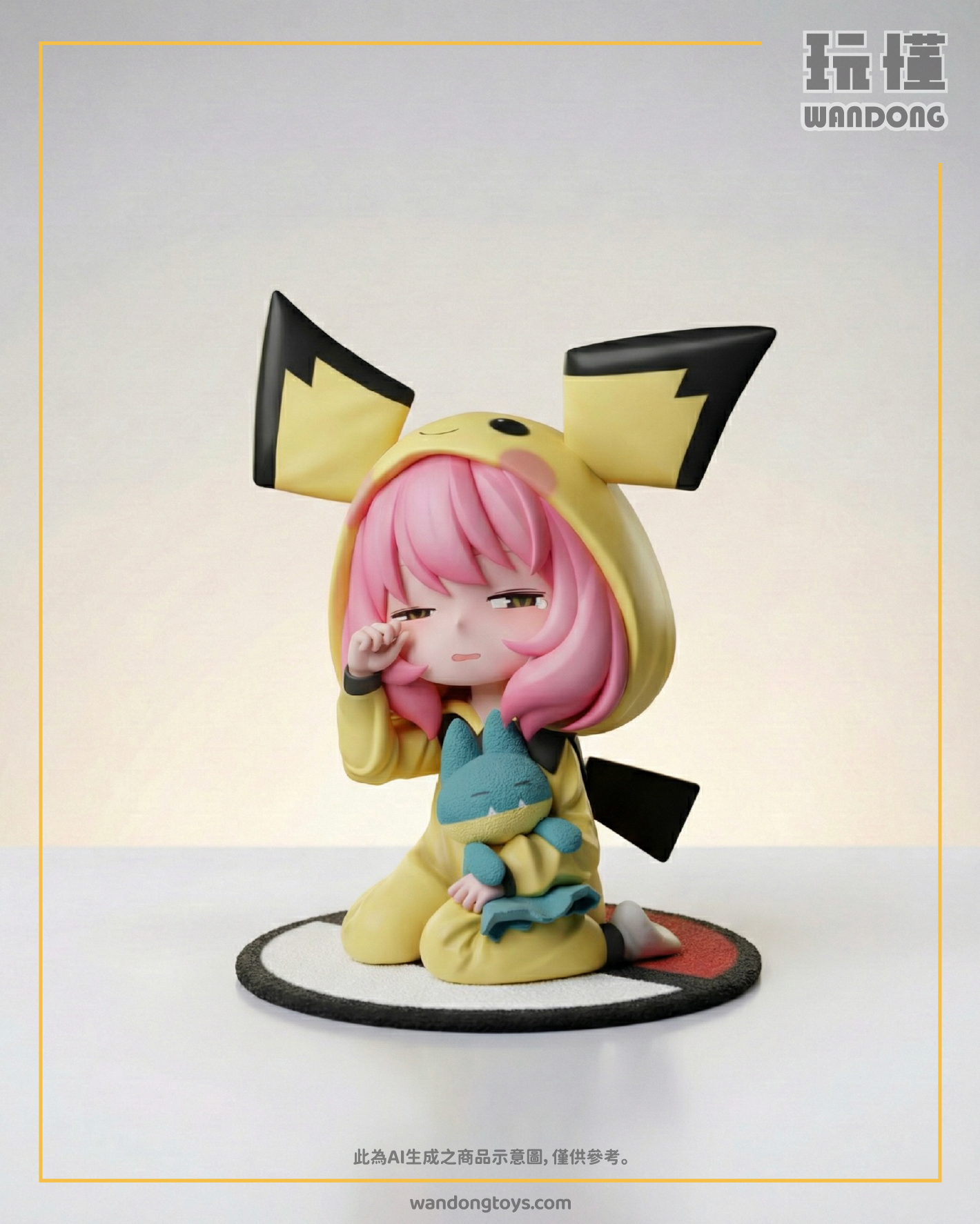 |商品簡介|▋工作室:整活▋作品名稱:皮丘睡衣 安妮亞|商品規格|▋作品規格:高42cm*寬40cm*深36cm▋材質說明:PU+樹脂▋其他説明:大貨送真實毛墊|聯絡我們|🔗LINE@線上客服:聯絡我們