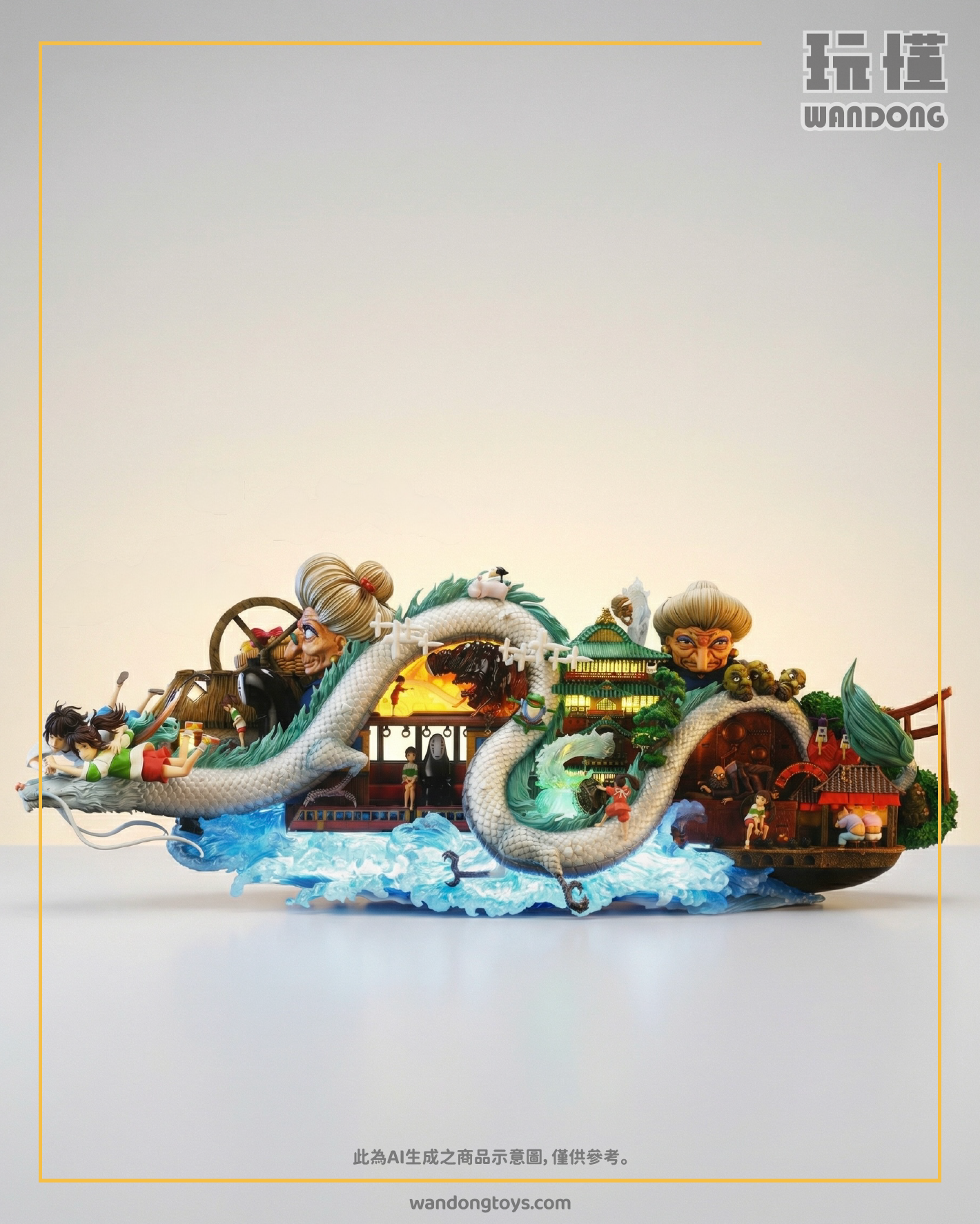 |商品簡介|▋工作室:Bard+UP▋作品名稱:神隱少女 《畫廊》系列第一款|商品規格|▋作品規格:高41cm*寬103cm*深22.1cm▋作品配置:豪華版:單雕像+人物+發光配置+畫板(可在黑暗環境裡出現星空效果)▋材質說明:PU+樹脂|聯絡我們|🔗LINE@線上客服:聯絡我們